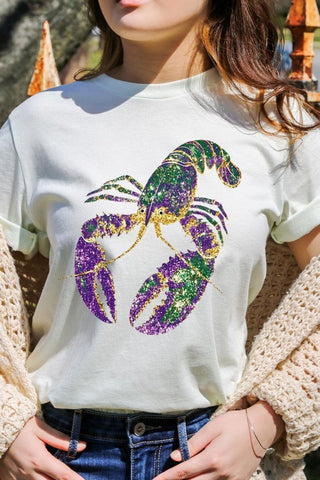 Mardi Gras Faux Glitter Crawfish Graphic Tee