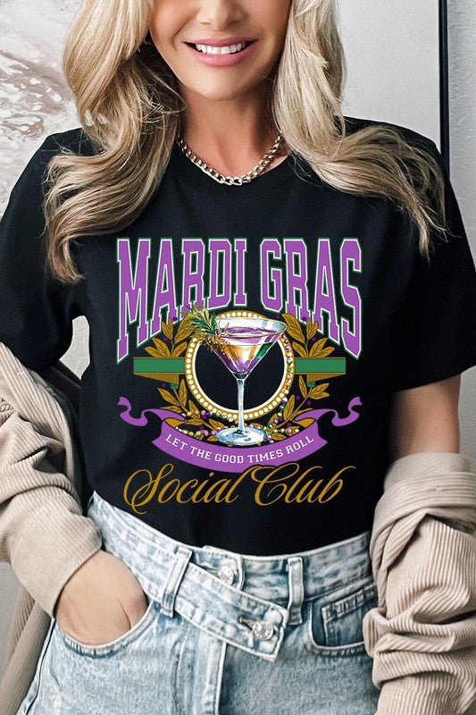 Mardi Gras Cocktail Graphic Plus Tee. **PLUS SIZE**