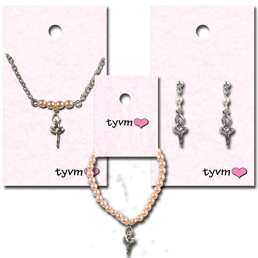 The bracelets are on a stretchy cord with a silver ballerina charm dangling from the center of the bracelet. This makes a nice gift for any little dancer in your life and also pairs well with our dainty necklace.