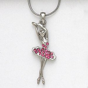 Graceful silver ballerina adorned with glistening pink, multicolor, or silver stones .
