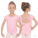 Girls Impression Mesh Bow Back Short Sleeve Leotard