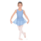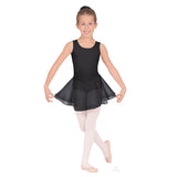 Soft, supple Cotton Lycra® wraps the body in ultimate comfort. This sleeveless dance dress features an attached double layer chiffon skirt and elegant scoop neck. The full front lining keep dancers fresh and dry with odor neutralizers and moisture wicking properties.