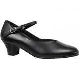 Women's Leather-like Comfort Character Shoe with Buckle Strap, 1 1/2 Inch Heel, and Padded Heel Insert