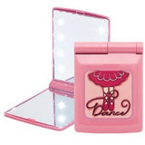 This compact mirror provides a clear view and true color details ideal for makeup touches on the go. It is suitable for your entire face makeup or close up facial grooming. A hidden magnetic power swtich controls the LED lighting. The hinge opens up flat to 180 degrees for an easy to grip handheld mirror. Batteries included.
