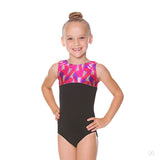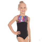 This tank leotard for girls flaunts a vibrant, prismatic collar accent in either Rainbow Swirl or Fuchsia Swirl. The bright, fuchsia swirl print incorporates bursts of purple and yellow and the rainbow swirl showcases a ripple effect of fuchsia, purple, yellow, blue, and green; each colorful pattern flaunts a subtle, metallic finish that shines as it catches the light. The high scoop neck, moderate scoop back, and stay-put straps keep your little one covered, confident, and focused during practices and rehearsals. Soft, supportive, and flexible, the Tactel® Microfiber fabric of this leotard stretches with movement then rebounds quickly for a snug, secure fit.