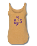 One of our favorite sayings Go Get 'Em Tiger! Almost nostalgia from playing ball as a kid when you hear your parents cheering for you in the stands. This tank is a fun play on words graphic that we know you'll love.