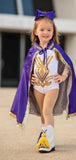 Step into the spotlight with the Golden Girls Costume (Suit + Cloak) by Belle Cher. Crafted from premium fabrics, this luxurious purple and gold ensemble features detailed stitching and an elegant design that ensures you stand out at any LSU game or event. Embrace your inner golden goddess and experience unmatched comfort and style with this authentic, handcrafted costume.