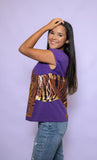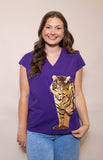 Wrap-Around Tiger | Women's Wide Shoulder Sequin Design V-Neck Tee (Purple